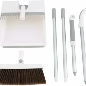 طقم مكنسة ومجرفة قابل للطي – تصميم واقف مع فلتر للشعر وتنظيف سهل