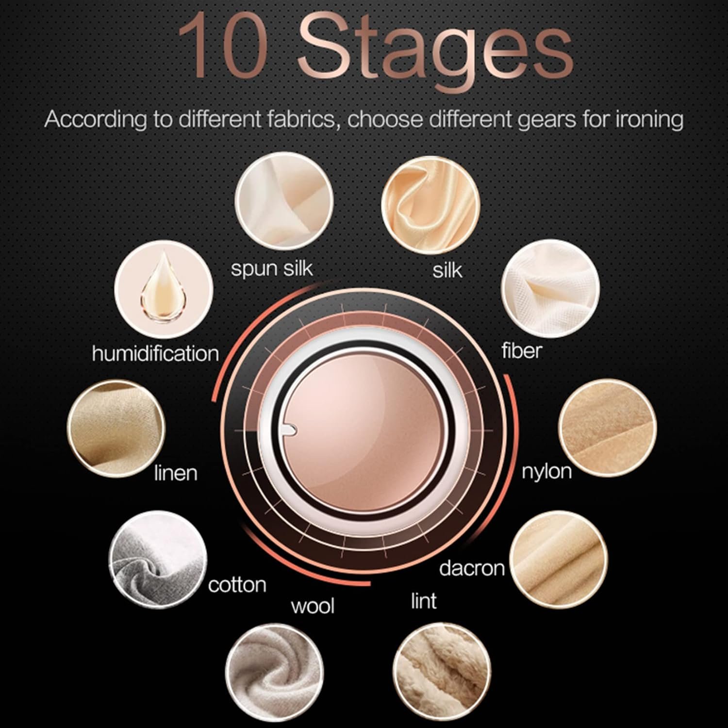 • 10 مستويات بخار قابلة للتعديل تناسب جميع أنواع الأقمشة.