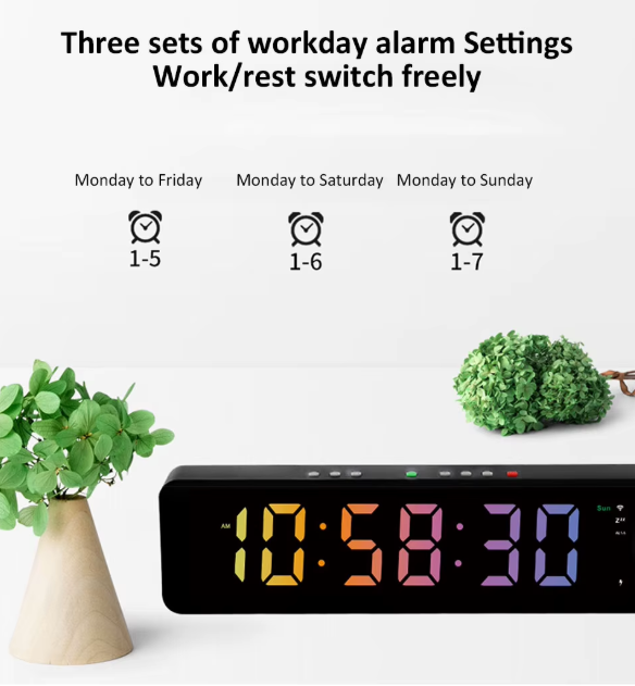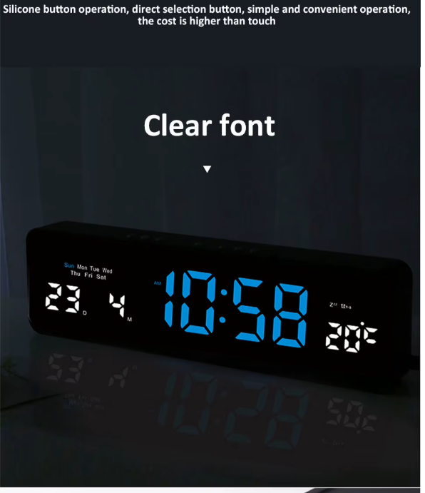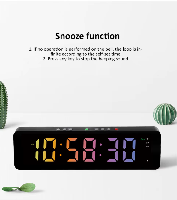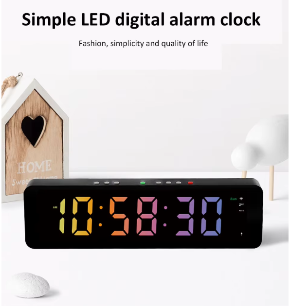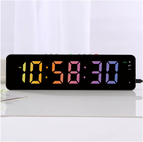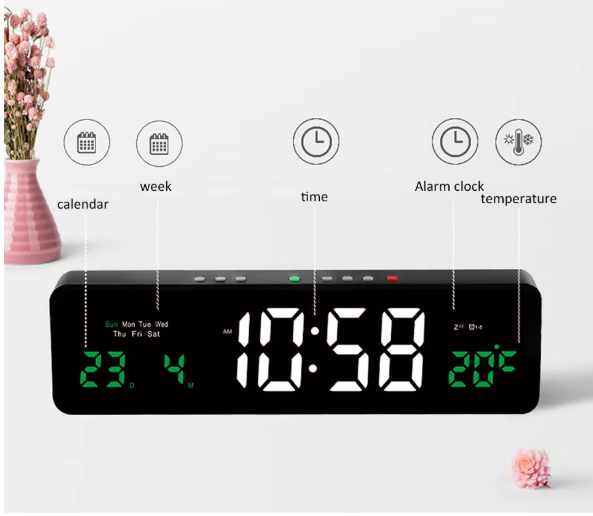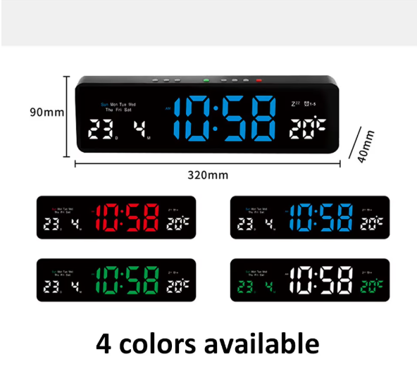 أضف لمسة عصرية وعملية إلى منزلك أو مكتبك مع ساعة المنبّه الرقمية 13 بوصة ذات التصميم الحديث والشاشة الكبيرة الواضحة. بفضل شاشة LED عالية الإضاءة، تعرض الساعة الوقت، التاريخ، اليوم، ودرجة الحرارة في آن واحد، مما يجعلها أكثر من مجرد منبّه تقليدي.