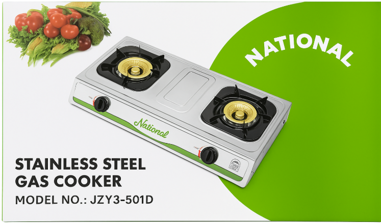 اذا كنت تبحث عن موقد غاز عملي وقوي يناسب المطبخ العصري ويوفر لك تجربة طهي مريحة، فإن National A.M.S JZY3-501D هو الخيار المثالي. يأتي بتصميم متين من الستانلس ستيل المقاوم للصدأ، مما يمنحه مظهرًا أنيقًا وسهولة في التنظيف بعد الاستخدام اليومي.
