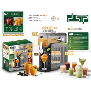 حوّل مطبخك إلى بار ومقهى عصري مع آلة DSP KJ3085 لصنع المشروبات المثلجة والسلاش. بفضل سعتها الكبيرة 1.6 لتر وقدرتها 200 واط، تمنحك هذه الآلة متعددة الاستخدامات إمكانية تحضير العصائر المثلجة، الميلك شيك، السلاش، الفرابيه، وحتى الآيس كريم والكوكتيلات المجمدة بكل سهولة وبلمسة زر واحدة.