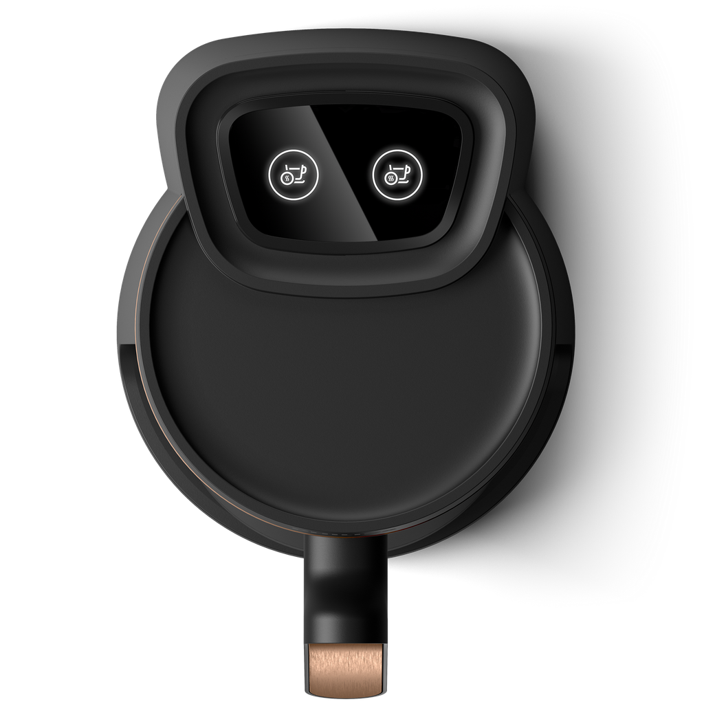 سهولة الاستخدام هي جزء أساسي من تصميمها؛ فهي مزودة بأزرار لمسية LED للتحكم البسيط، بالإضافة إلى مؤشرات صوتية وضوئية تعلمك عند انتهاء التحضير. أما التصميم، فيجمع بين الأناقة والعملية مع هيكل أسود أنيق ولمسات من النحاس المصقول، مما يجعلها قطعة ديكور مميزة في أي مطبخ.