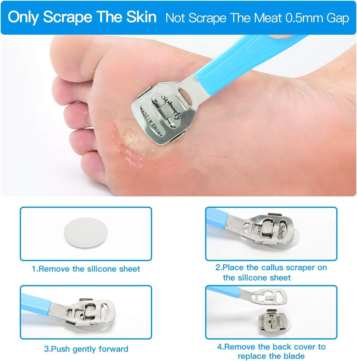 مجموعة العناية بالقدمين لإزالة الجلد الميت وتشقق الكعبين + مع 5 شفرات إضافية