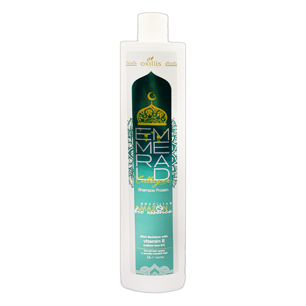 استعيدي فخامة الشعر البرازيلي الحريري مع تركيبة «إميرالد بروتين ثيرابي»؛ نظام احترافي متكامل صُمِّم في مختبرات Oxillis Cosméticos البرازيلية ليزوّد ألياف الشعر بما تحتاجه من بروتين مُتحلّل (Hydrolyzed Protein) وفيتامين E والزيوت الطبيعية المستخلَصة من جوز الهند والألوفيرا.