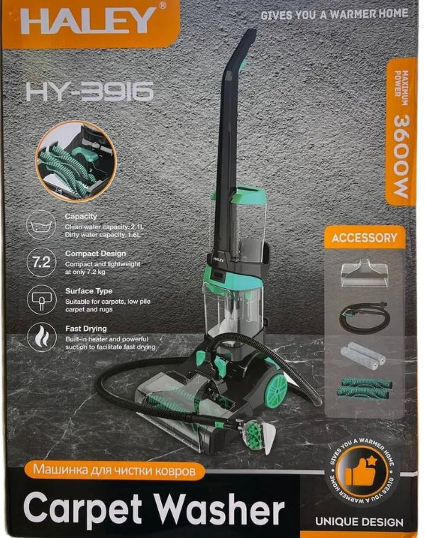 يمنحك جهاز غسيل السجاد HY-335 تجربة تنظيف شاملة بفضل وظائفه المتعددة التي تجمع بين الغسيل، الشفط الرطب، والشفط الجاف. يعمل بقدرة قوية تصل إلى 3600 واط ليزيل الأوساخ، الغبار، والبقع العميقة بفعالية، ويعيد الانتعاش والنظافة إلى السجاد والمفروشات.