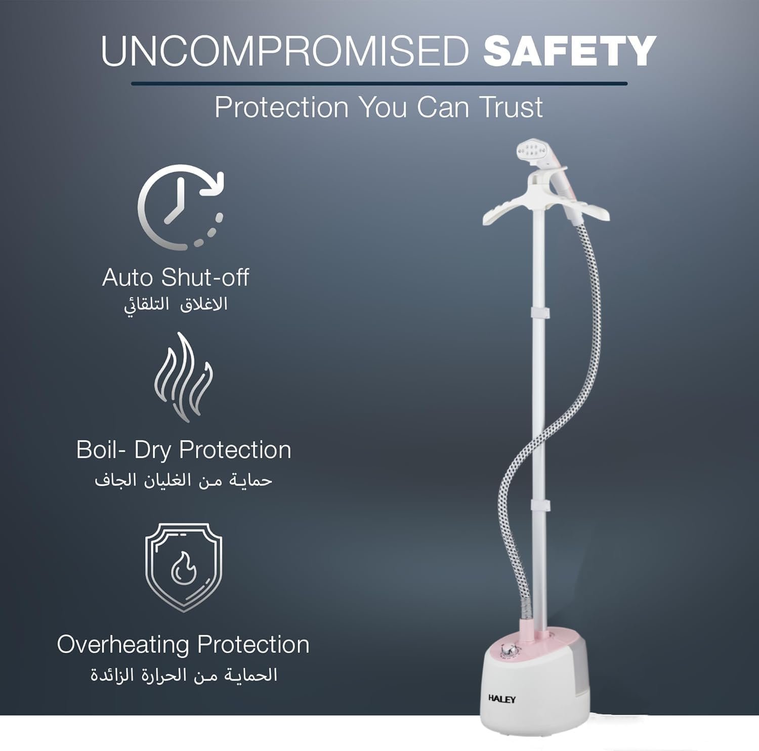 تمتاز المكواة بخاصية التسخين السريع خلال 40 ثانية، لتكون جاهزة للاستخدام فوراً وتوفر وقتك. كما تم تصميمها مع أعمدة قابلة للتعديل بثلاثة مستويات ارتفاع لتناسب الملابس الطويلة أو لاستخدام أكثر راحة أثناء الجلوس.