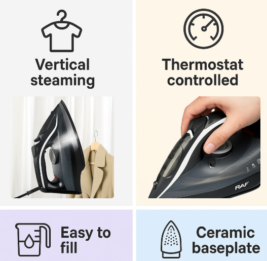 مكواة بخار RAF قوة 2200 واط سعة 400 مل بخار عمودي مثالي للملابس المعلقة والستائر
