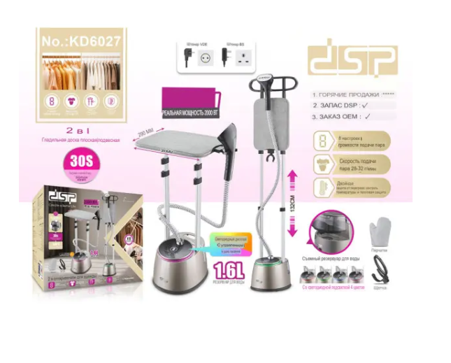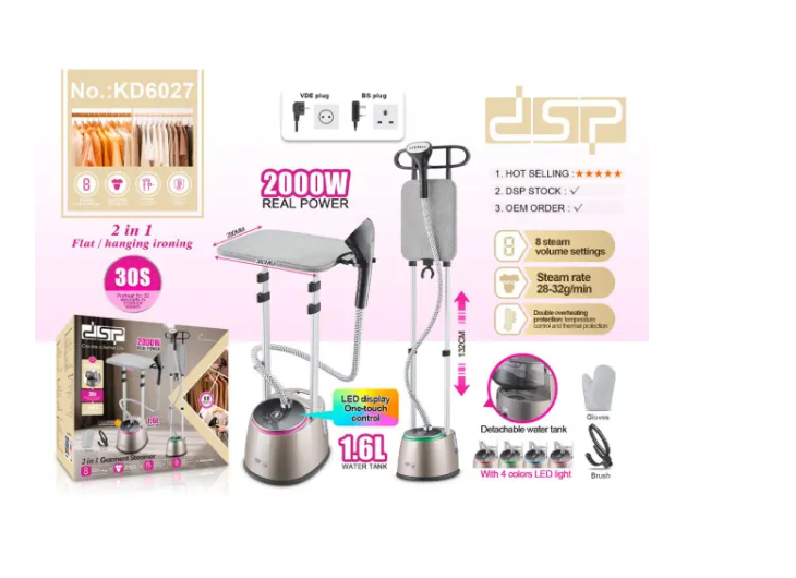 مكواة بخار عمودية DSP – قوة 2000 واط – كي عمودي وسطحي سعة 1.6 لتر
