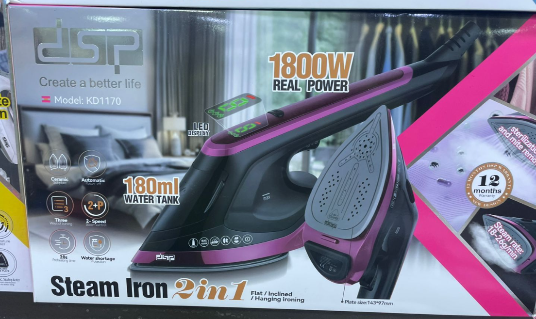مكوى بخار 2 في 1 من DSP بقوة 1800 واطمكوى بخار 2 في 1 من DSP بقوة 1800 واط